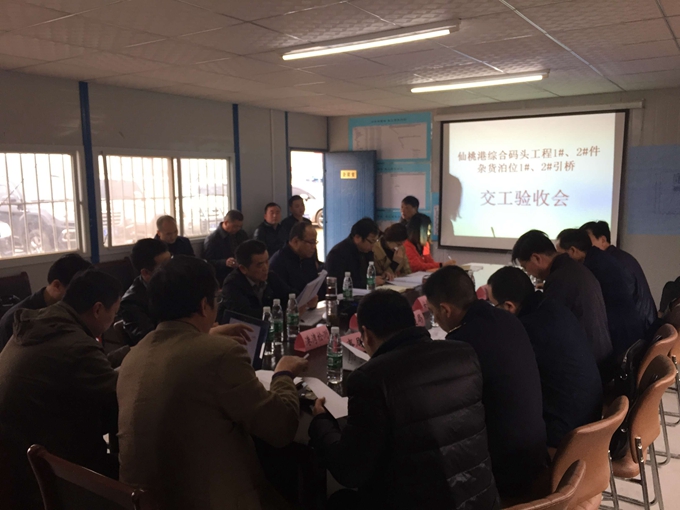 3月10日,在仙桃港碼頭項目現場會議室召開的仙桃港碼頭工程驗收會議上,武漢港務集團總經理助理徐繼傳正式宣布仙桃港碼頭1#、2#件雜貨泊位,1#、2#引橋通過單位工程驗收。仙桃市交通局、海事局、質監(jiān)站、武港集團,設計院、監(jiān)理組、港灣檢測,施工方等代表參加了會議。
