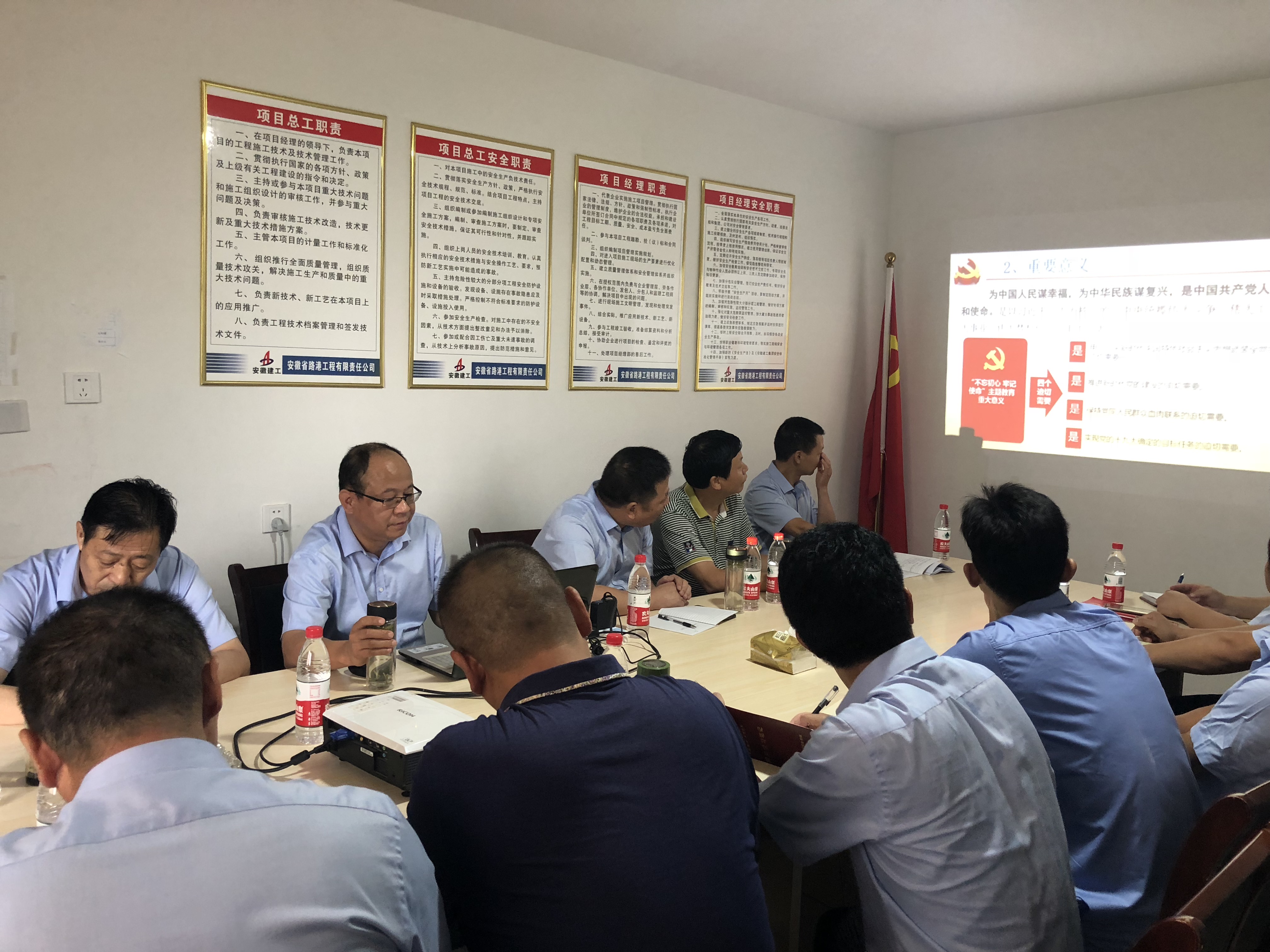 通過此次主題教育黨課,項(xiàng)目人員更加深入理解認(rèn)識(shí)“不忘初心、牢記使命”的重要意義,堅(jiān)定了理想信念,全體成員統(tǒng)一思想、團(tuán)結(jié)一致,為工程建設(shè)貢獻(xiàn)自己的力量。